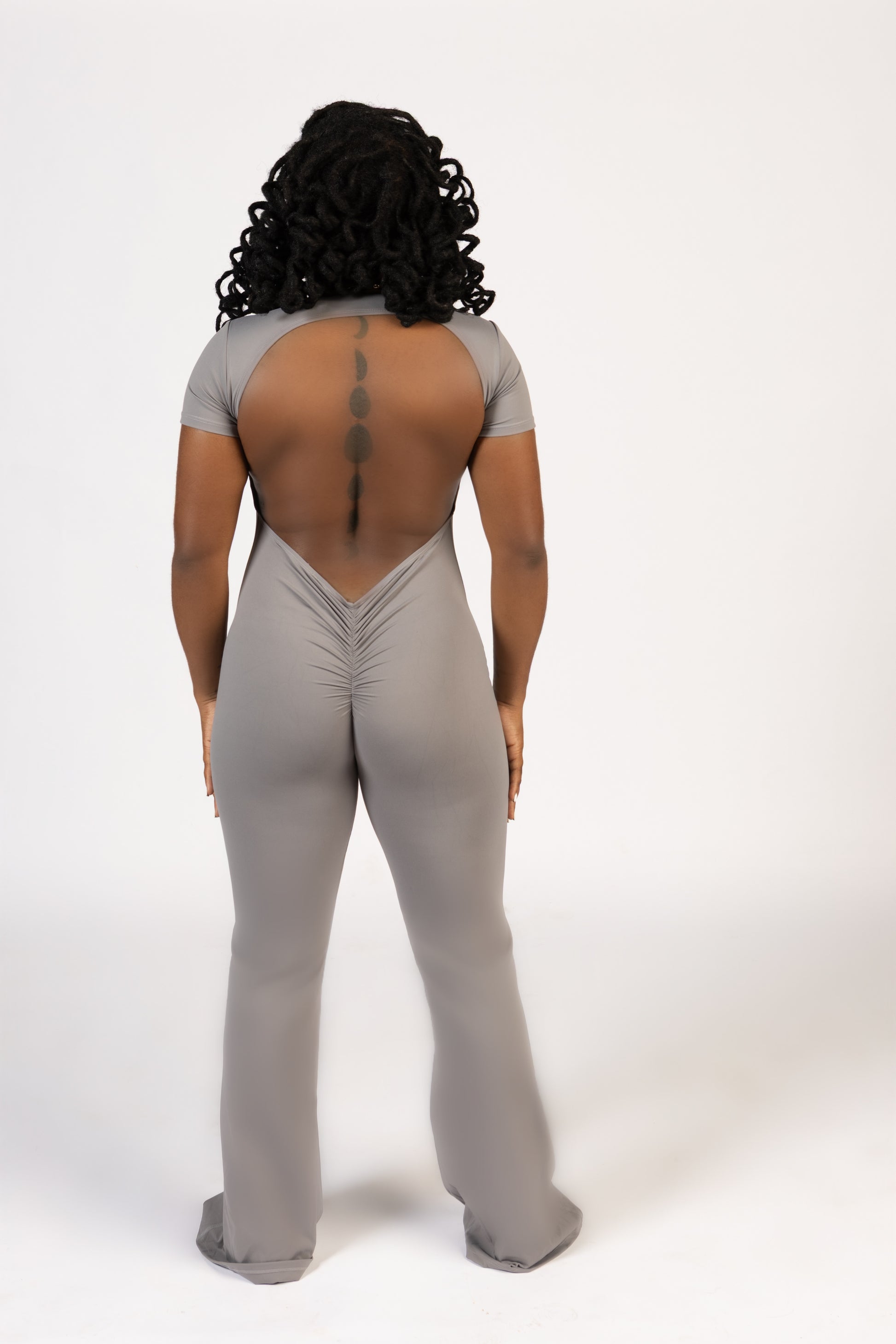Show off in this SHORT SLEEVE OPEN V BACK FLARE JUMPSUIT that shapes your curves! Perfect for the gym or night out, the flare pants and the open back v cut adds a touch of fun to your style. Get ready to turn heads and feel confident in this jumpsuit.